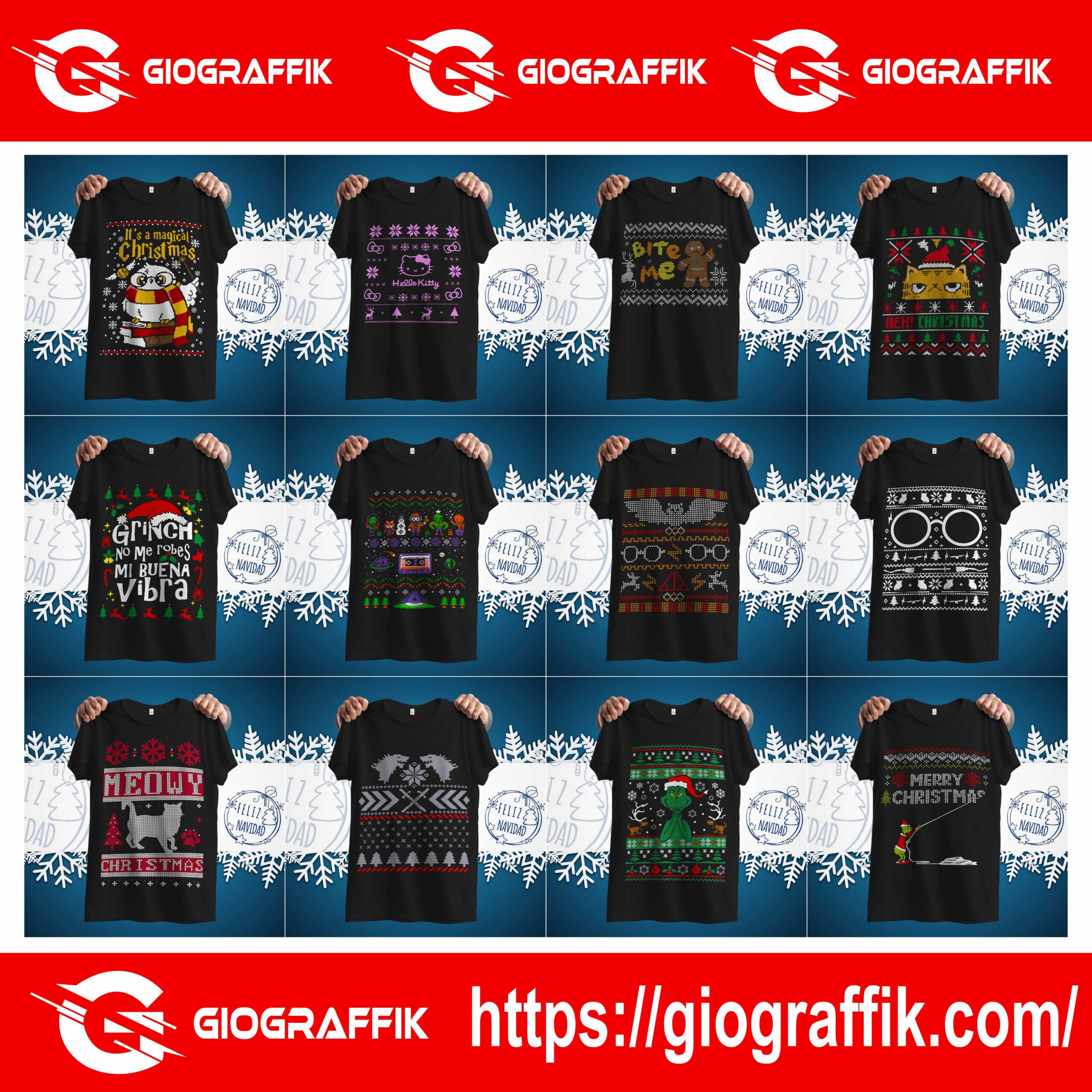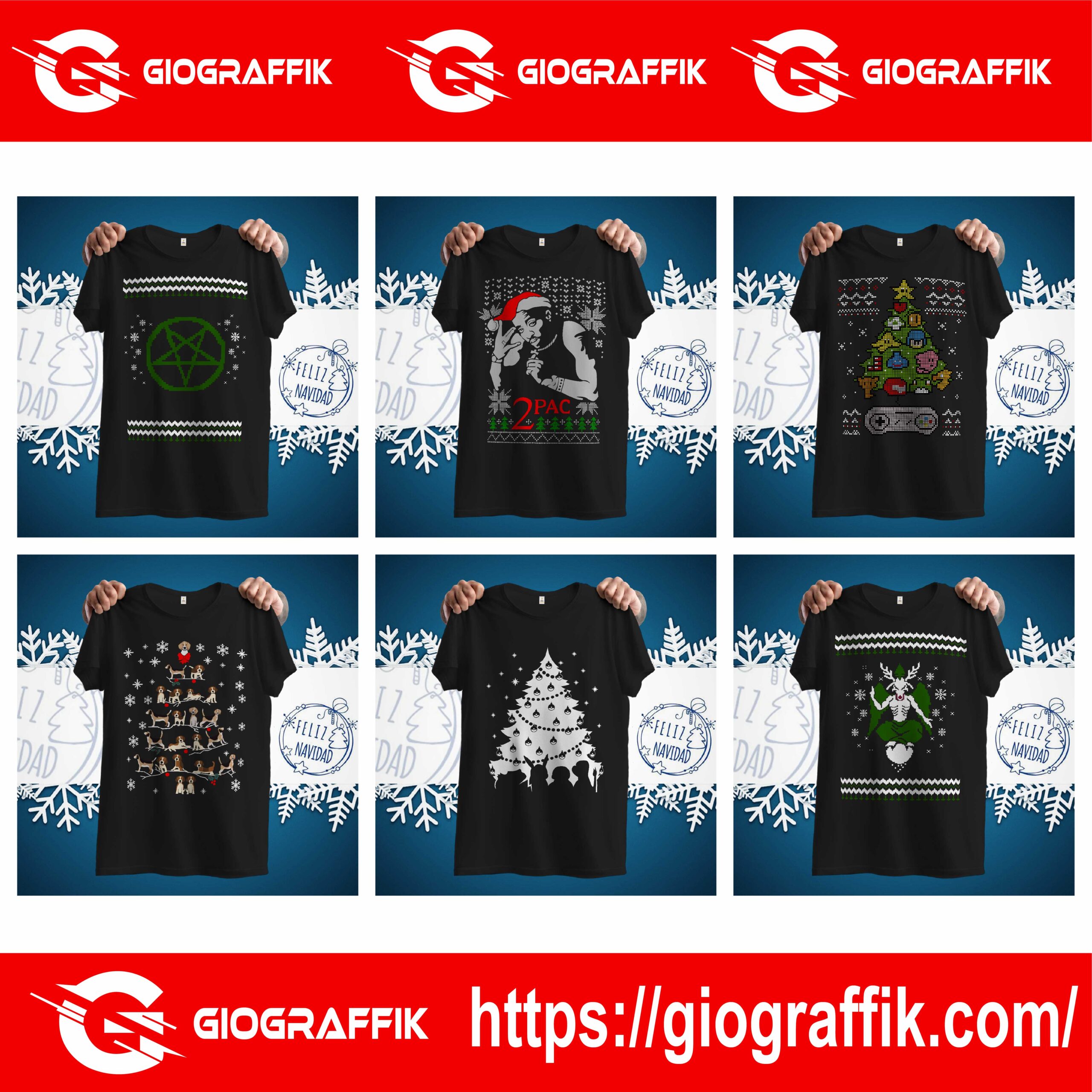 En Giograffik creamos artes navideños únicos y de alta calidad, ideales para sublimar en poleras y más. 🎁💫